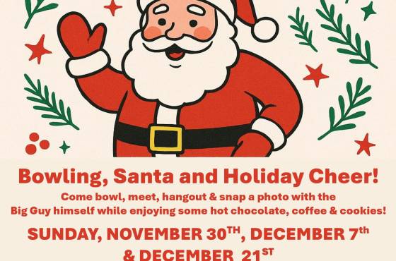 Grab your cameras and Christmas Cheer cause Santa’s waiting to meet YOU! Join us for a magical night filled with laughter, joy and holiday cheer. Bring the kids for a fun night of bowling, photos and special memories hanging out with Santa while enjoying some holiday fun for the whole family.